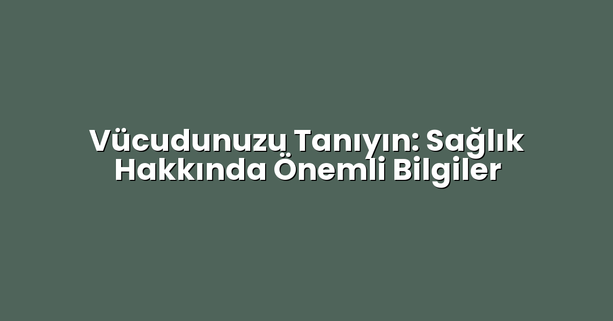 Vücudunuzu tanımak, sağlıklı bir yaşam sürdürmenin ilk adımıdır. Beslenme, fiziksel aktivite, ruh sağlığı ve düzenli sağlık kontrolleri gibi unsurlar, sağlığın korunmasında büyük rol oynar. Kendinize ve vücudunuza dikkat ederek, daha sağlıklı bir yaşam sürdürebilirsiniz. Sağlık, sadece bir hedef değil, sürekli bir yolculuktur ve bu yolculukta atacağınız her adım önemlidir.